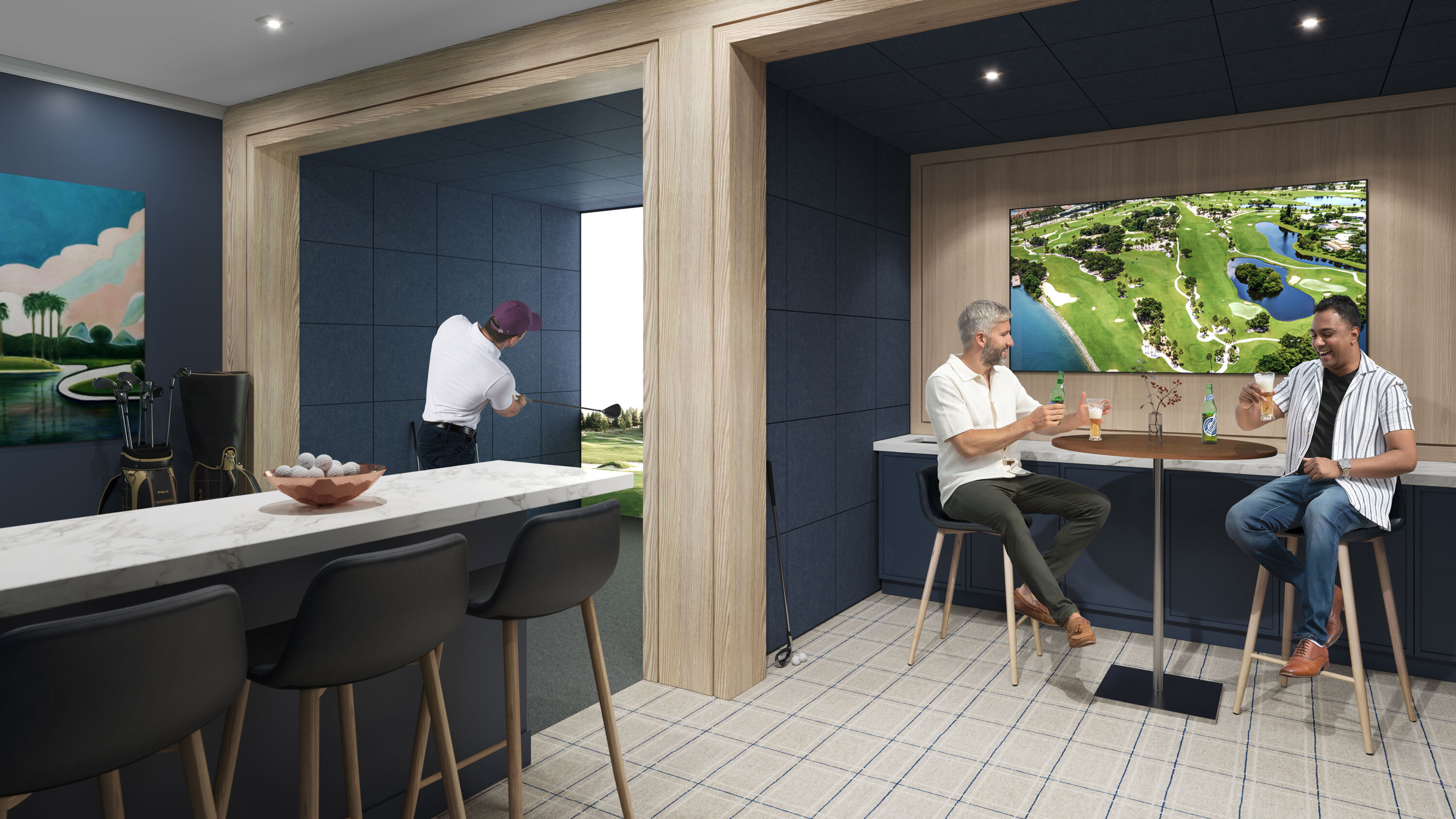 - Golf simulator and lounge