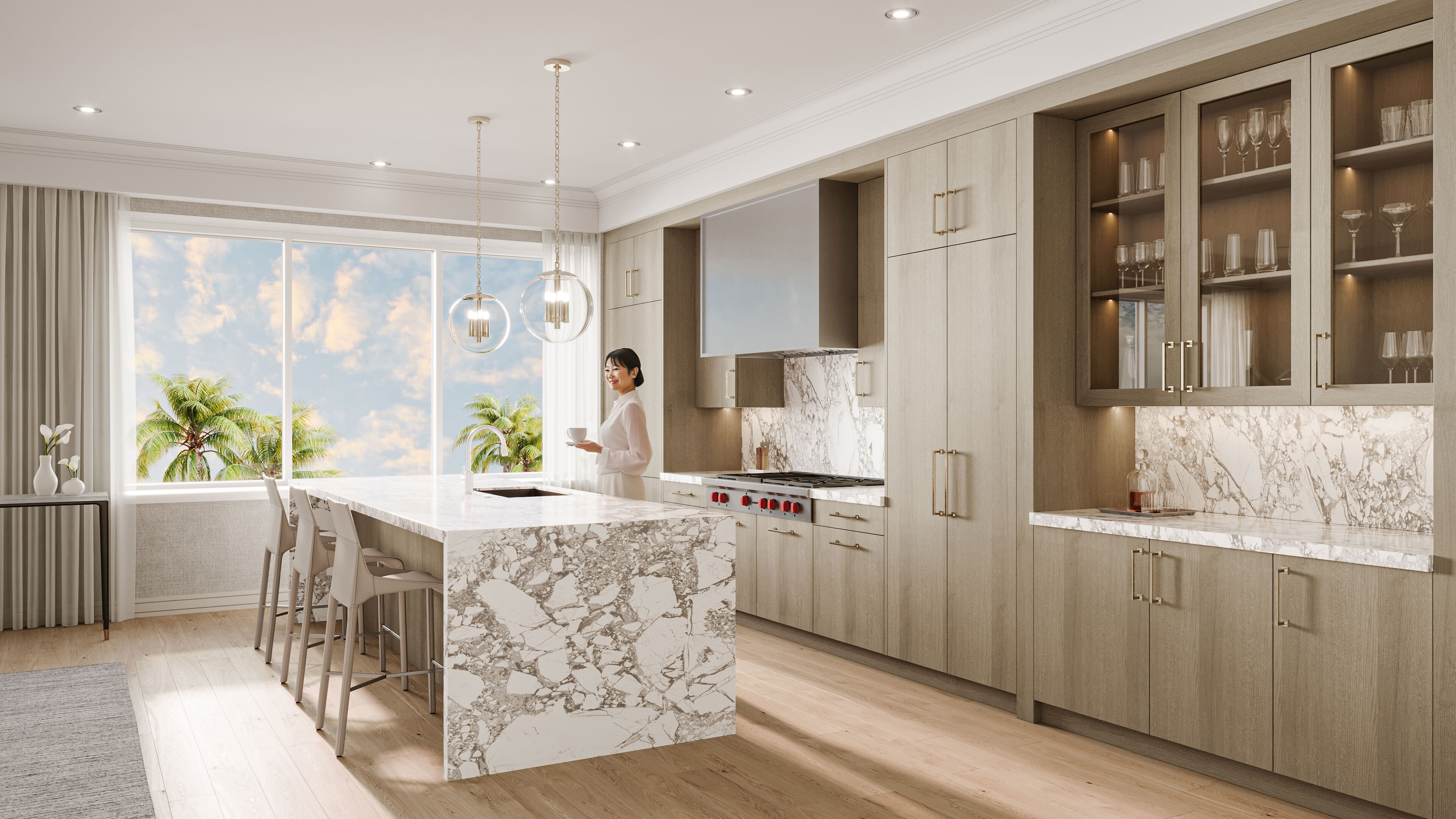 Blending indoor and outdoor living, Caretta is a retreat of refined comfort. Oversized terraces with outdoor kitchens enhance the beautifully detailed interior design with elegant finishes, high ceilings, and curated craftsmanship.